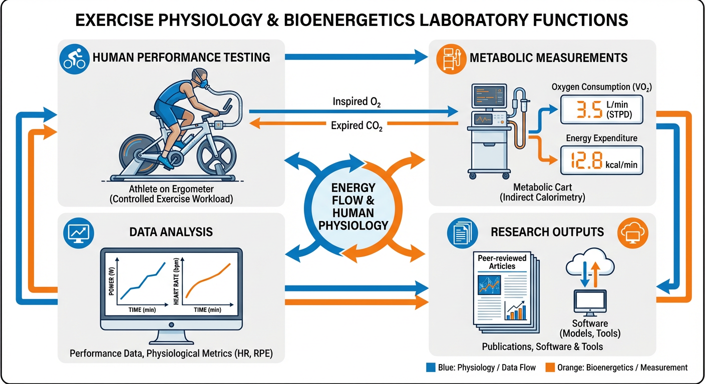 Our laboratory specializes in integrative physiology and bioenergetics. Our core mission is to understand the bioenergetic mechanisms of exercise—specifically how the body produces, transports, and utilizes energy—to optimize sports performance, improve recreational physical activity, and support cardiovascular prevention and rehabilitation.
